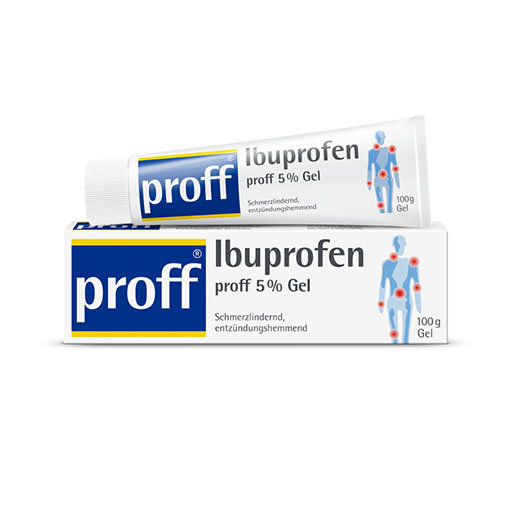 proff® Schmerzgel mit Ibuprofen – zur äußerlichen Behandlung von Muskel-, Gelenk- und Rückenschmerzen.