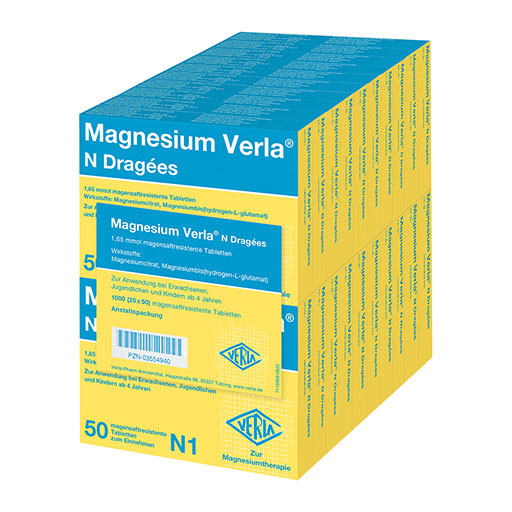 Seit mehr als 65 Jahren bewähren sich Magnesium Verla® N Dragées als Arzneimittel mit höchsten Qualitätsstandards in der Therapie von Magnesiummangelzuständen. Magnesium wird am besten vom Körper aufgenommen, wenn kleinere Mengen über den Tag verteilt eingenommen werden. Durch die niedrige Dosierung von Magnesium Verla® N Dragées sind sie individuell gut dosierbar und können ganz nach Bedarf zu verschiedenen Tageszeiten eingenommen werden. Sie haben einen leckeren Geschmack nach Vanille und lassen sich sehr leicht schlucken. Die magensaftresistenten Dragées sind außerdem gut verträglich. Zusätzlich werden in Magnesium Verla® N Dragées ausschließlich organische Magnesiumverbindungen für eine gute Aufnahme und Bioverfügbarkeit im Körper verwendet.